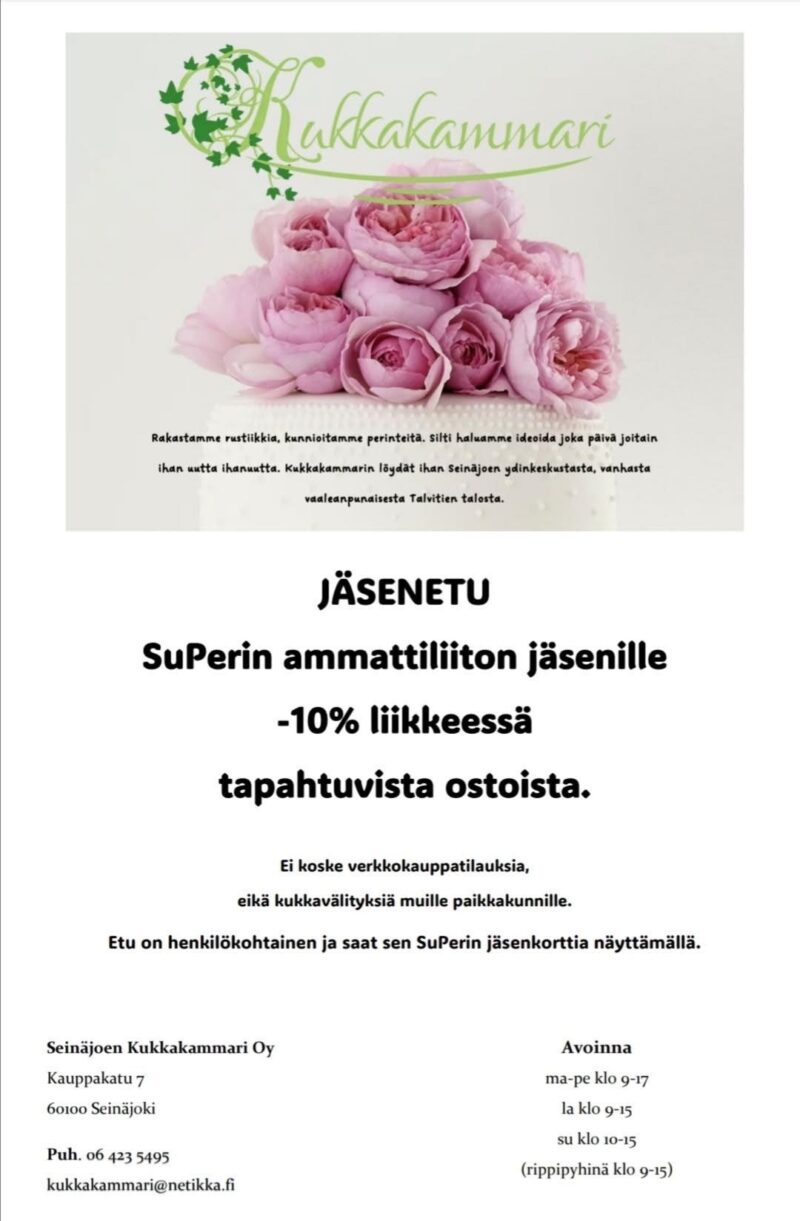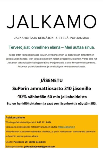 Seinäjoen seudun SuPerin jäsenille -10% alennusta Jennin palveluihin jäsenkorttia näyttämällä.