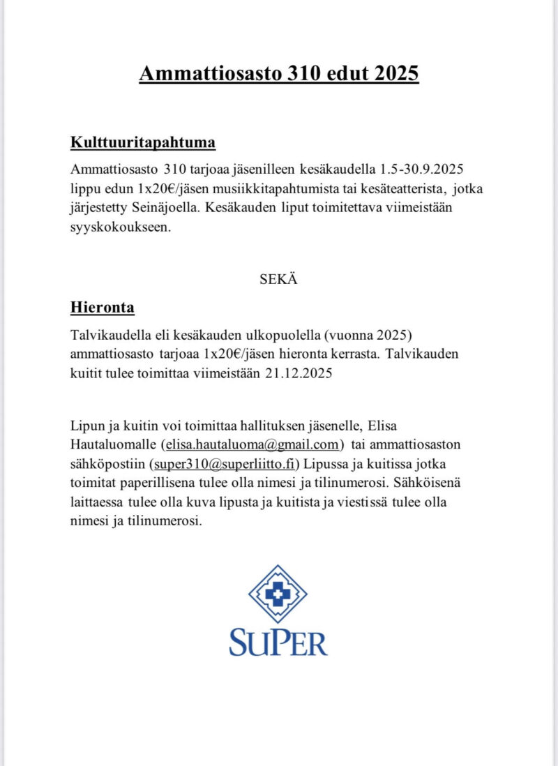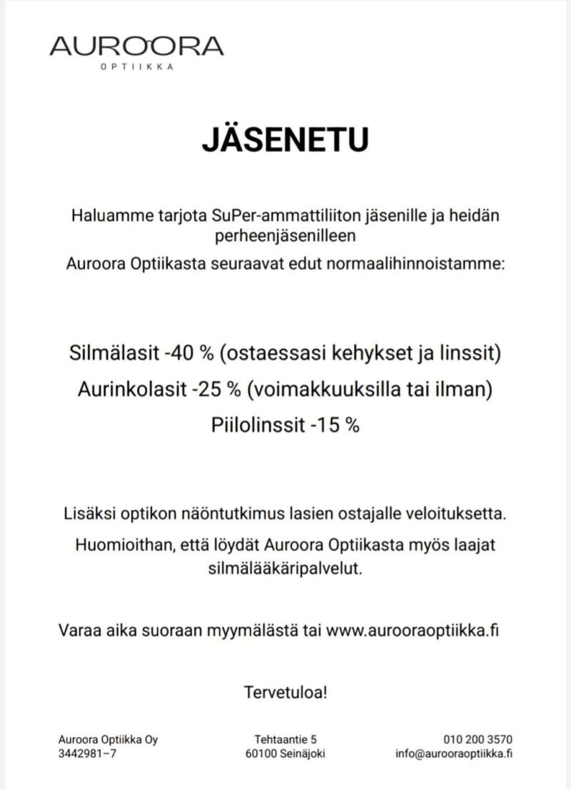 Katso tarkemmat tiedot jäseneduista SuPerin verkkosivulta Jäsenedut.