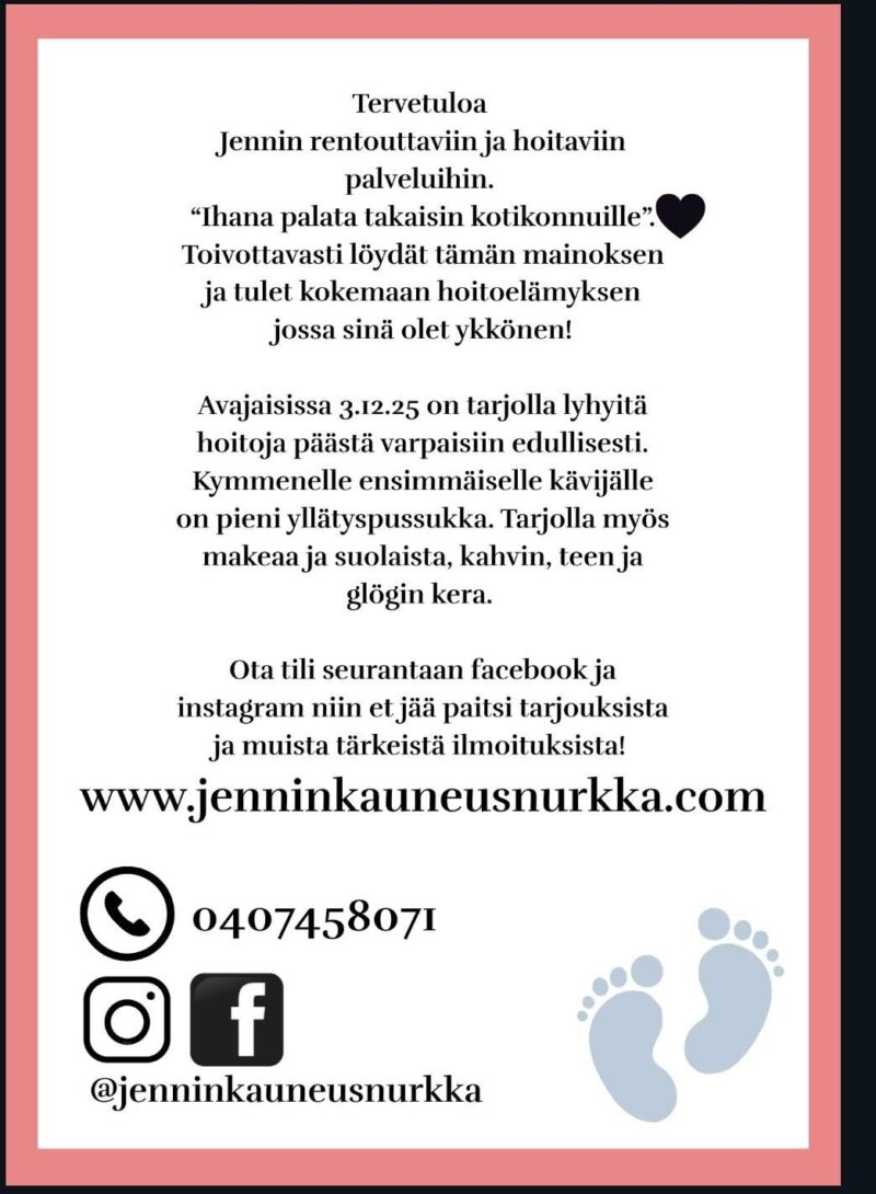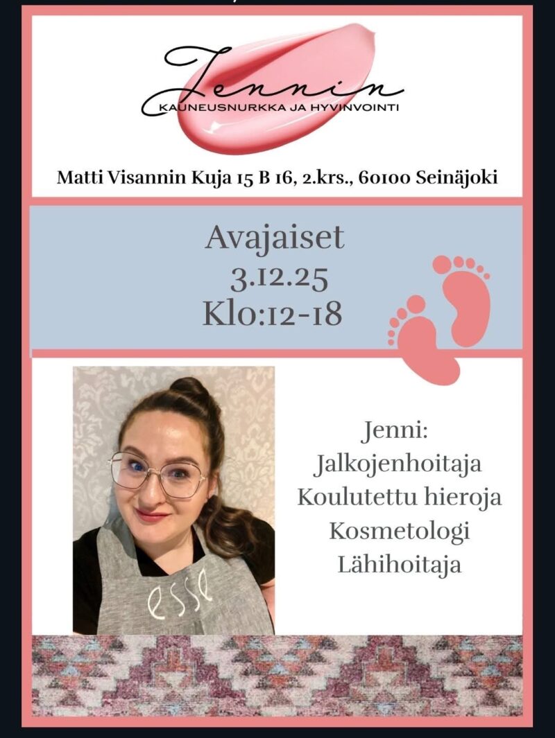 Jennin kauneusnurkka -avajaisia vietetään 3.12.2´5 Seinäjoella